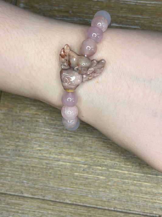Rare Argentine Lemurian Calcite and Moonstone Bracelet