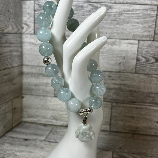 Aquamarine Stretch Bracelet With Jade Charm