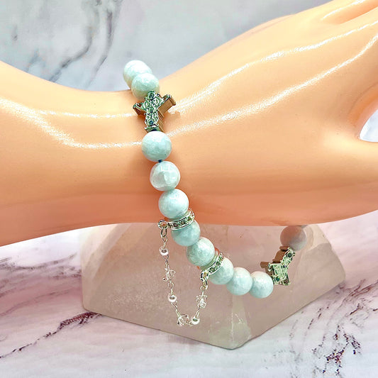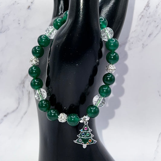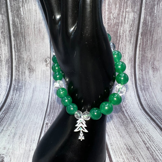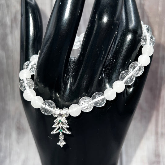 Chalcedony and Clear Crackled Quartz Bracelet with Tree Charm