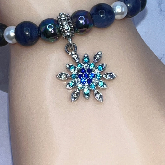 Sodalite and Pearl Bracelet with Snowflake Charm