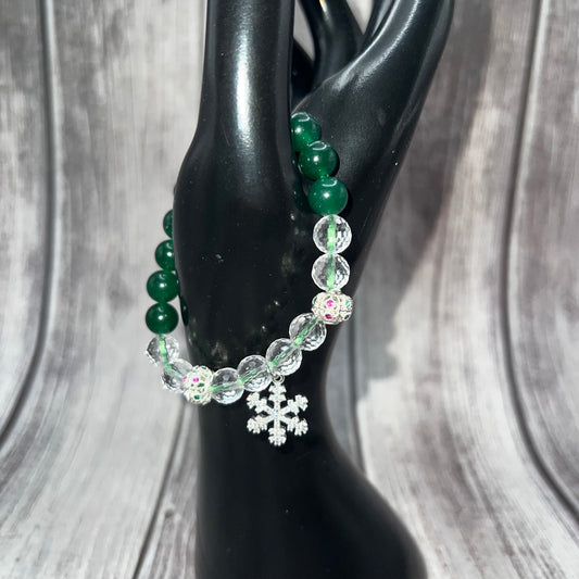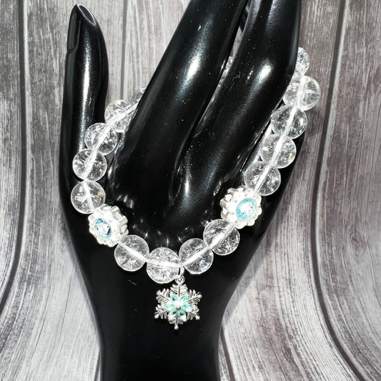 Clear Crackled Quartz Bracelet with Snowflake Charm