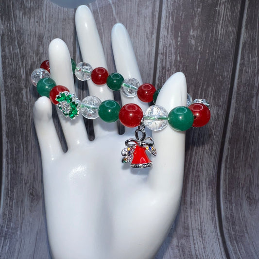Red and Green Chalcedony Bracelet with Sparkly Spacers